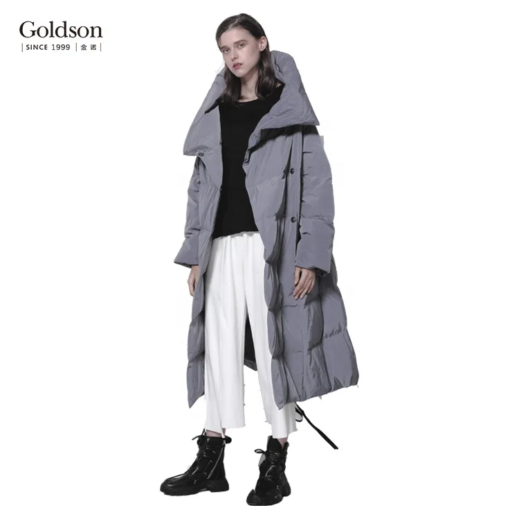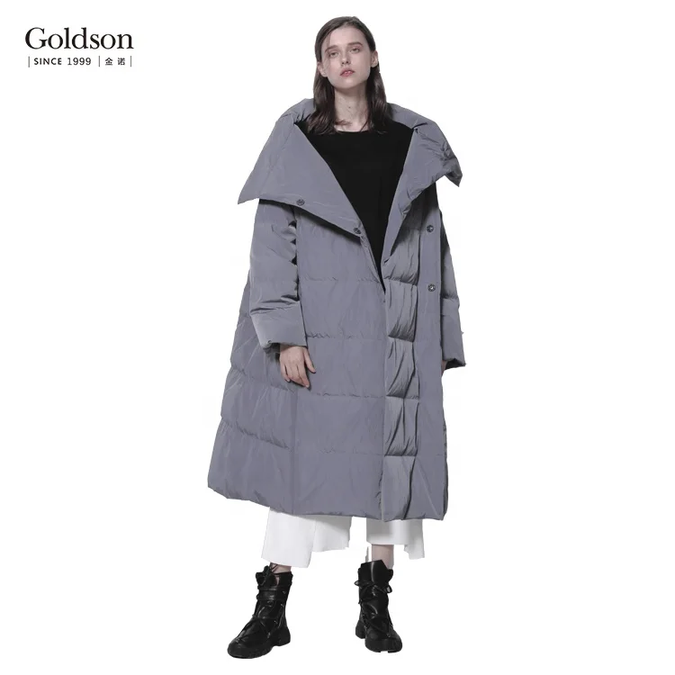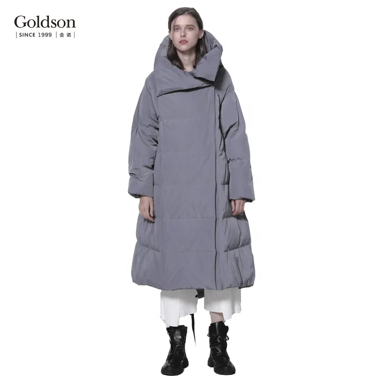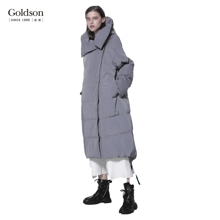 Women's High Quality Quilted Nylon Coat Turn-Down Collar Long Duck Feather Waterproof Winter Season Hooded Polyester Woven